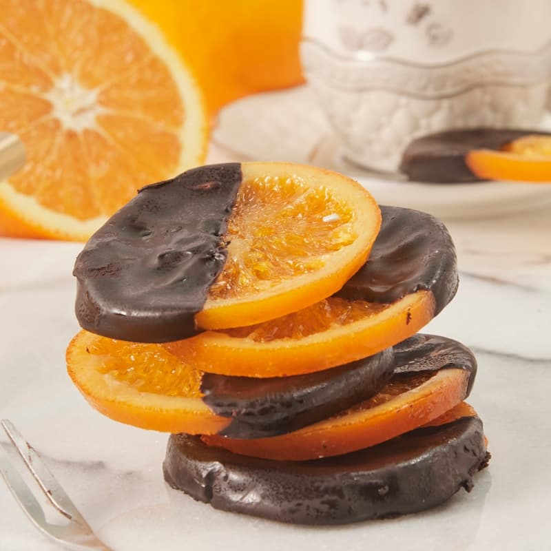 法式巧克力橙片是一種經典甜點,將新鮮橙片裹上絲滑的黑巧克力。