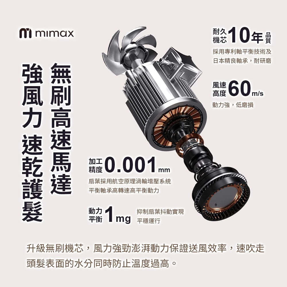 🔹升級無刷機芯 強風力快速吹乾