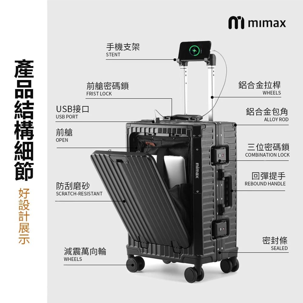 📢產品特色🔹雙充電接口🔹TPE靜音萬向輪🔹三位數字密碼鎖🔹掛勾功能🔹手機支架🔹德國工藝3層PC材質🔹鋁合金邊框🔹鋁合金多檔拉桿🔹杯架、傘架設計🔹前倉可放筆電、ipad