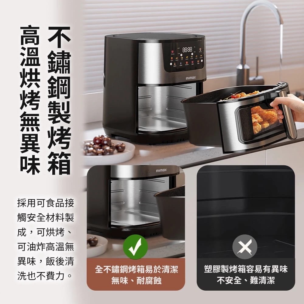 📢產品特色🔹1050W超大功率🔹無油烘烤 少油 更方便🔹烤箱不沾黏 清潔容易🔹簡單點選 內建烹飪時間設定🔹觸控螢幕 自由設定烘烤模式🔹不鏽鋼製烤箱 高溫烘烤無異味🔹8.8L大容量烤箱 輕鬆應對派對🔹超大透明可視窗 清晰視野 看得清